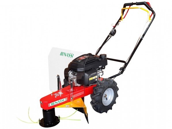 Deze trimmer maaier is ideaal voor het maaien van hoog gras, wildgroei en ruw terrein. Dankzij de grote wielen met tractiebanden biedt de machine uitstekende stabiliteit en grip, zelfs op oneffen ondergronden.