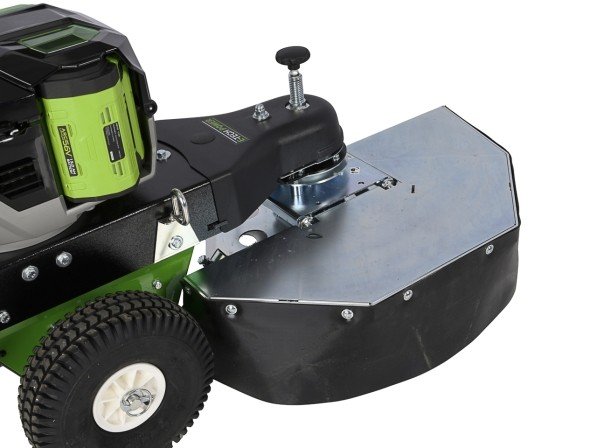 Dankzij de stevige en veilige openklapbare deflector kunt u comfortabel en beschermd werken. De deflector zorgt ervoor dat rondvliegend vuil en stenen worden tegengehouden, waardoor u veilig uw werkzaamheden kunt uitvoeren.