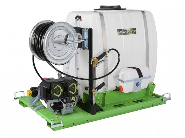 De E-Tech Power A-SPRAY500LPU is een veelzijdige en krachtige sproeigroep, aangedreven door de EGO PU2710 Power+ 56V accu motor. Met een polyethyleen tank van 500 liter en een AR 403 membraanpomp is dit toestel geschikt voor grootschalige toepassingen in landbouw, boomkwekerijen en professionele groenzorg.