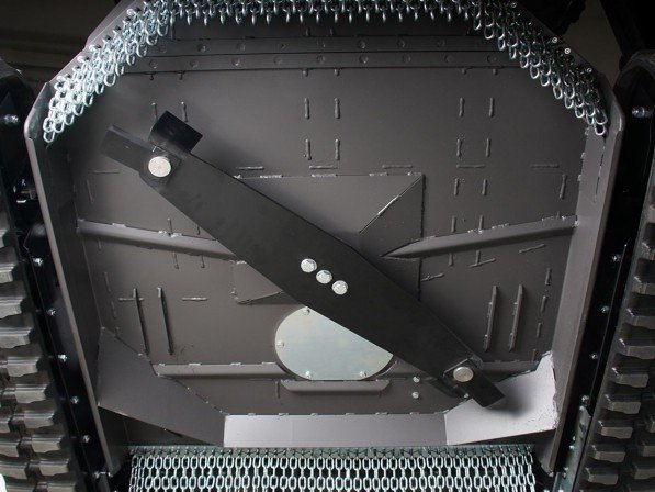 De machine is voorzien van rupsbanden met een breedte van 180 mm, wat zorgt voor een goede grip en stabiliteit op verschillende ondergronden. De hydrostatische aandrijving maakt een variabele snelheid mogelijk tot maximaal 7 km/u.