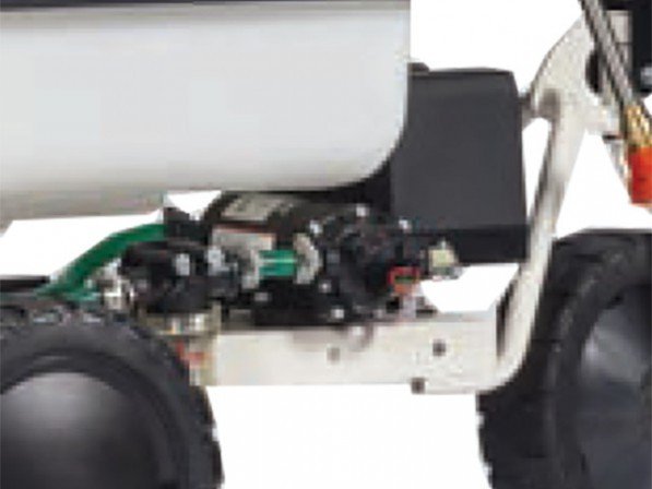 De aandrijving wordt verzorgd door een professionele 12 V elektrische pomp, gevoed door een ge