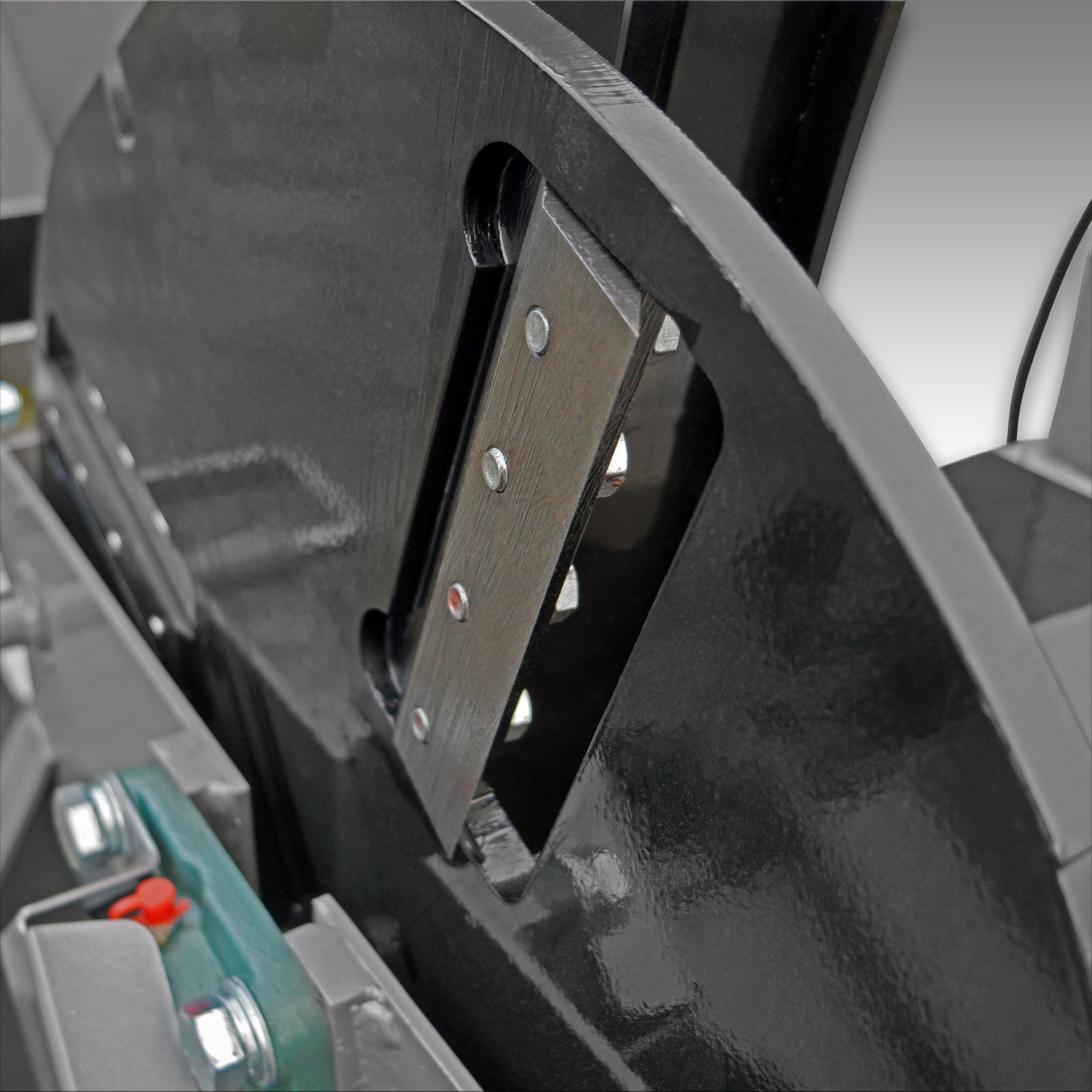 De materiaaldikte van deze hakselaar zorgt voor duurzaamheid. De machine is onderhoudsvriendelijk ontworpen en door het losdraaien van slechts één schroef kan de vliegwielkap worden geopend om toegang te krijgen tot de vier snijmessen. Deze messen zijn aan beide zijden geslepen en kunnen indien nodig worden gedraaid.