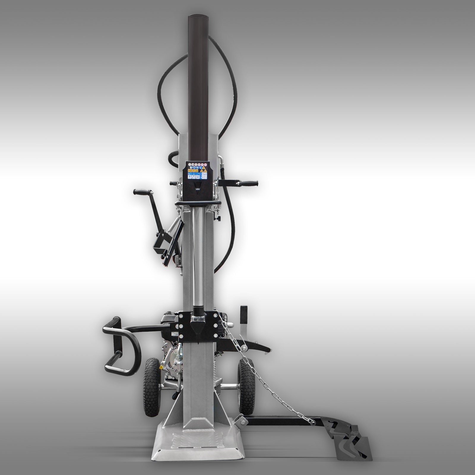 De houtklover is uitgerust met een stamlift, wat het plaatsen van zware boomstammen vereenvoudigt. Dankzij de grote luchtbanden, het handvat en het extra transportwiel is de machine makkelijk door één persoon te verplaatsen. De kloofcilinder is eenvoudig vast te zetten op een hoogte van 1,90 meter.