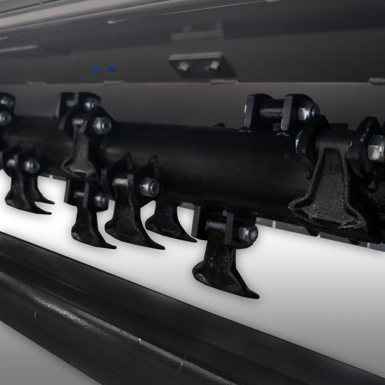 De 26 speciaal geharde hamermessen, elk met een gewicht van 0,8 kg, versnipperen het materiaal tot een minimum. De hoge vliegwielmassa zorgt voor optimale prestaties, zelfs bij hoog gras en stroachtig materiaal.