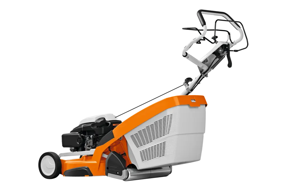 De STIHL benzine grasmaaier RM 655 RS is uitgerust met een roestvrij stalen grasrol op de achteras. Deze rol egaliseert het gemaaide gras in de rijrichting, waardoor het bekende Engelse lijnenpatroon ontstaat.