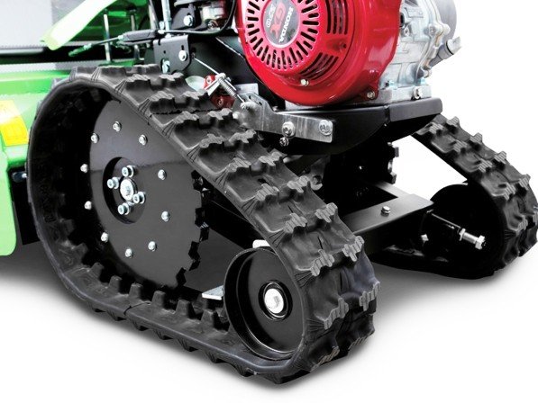 De rupsbanden bieden superieure grip en stabiliteit, vooral op hellingen en natte ondergronden. De rolsschraper voorkomt verstopping van de rupsbanden, waardoor constante prestaties gegarandeerd zijn.