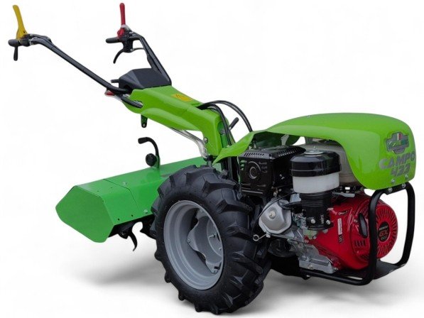 De CAMPO 433 wordt geleverd inclusief een bakfrees van 80 cm (aanpasbaar tot 50 cm), grote wielen met regelbare flenzen en een “Rapido” snelkoppeling voor het eenvoudig wisselen van werktuigen.