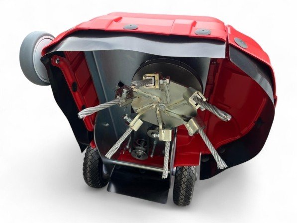 De machine is uitgerust met zes duurzame staalborstels die zorgen voor een grondige verwijdering van onkruid. De borstels zijn ontworpen om effectief te werken op verschillende soorten oppervlakken, van bestrating tot beton.